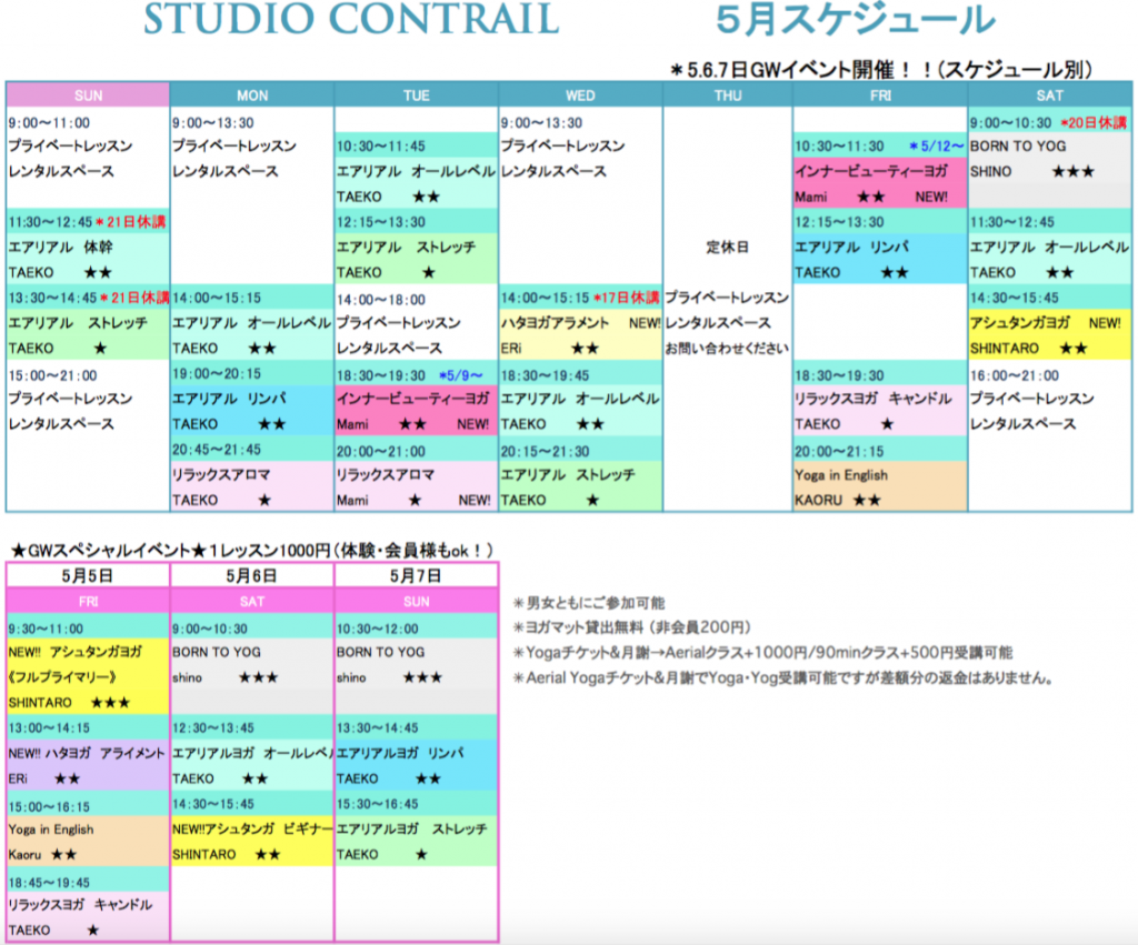 新しくSHINTARO先生の『アシュタンガヨガ』、ERi 先生の『ハタヨガアライメント』、Mami先生の『インナービューティヨガ』『リラックスアロマ』が追加されています💕